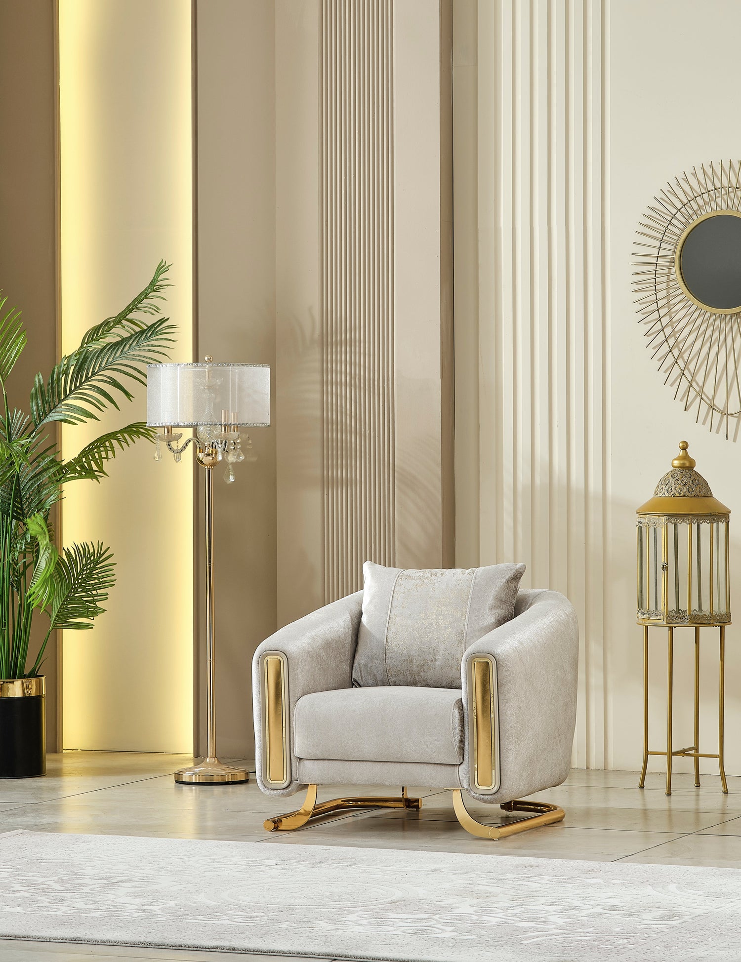 This set creates a sophisticated atmosphere in living spaces with its elegant design details and flawless workmanship. This set, which prioritizes elegance, has an impressive design where classic and modern lines come together in a harmonious balance. Its structure with soft lines and carefully selected fabric texture add a unique elegance to the set.