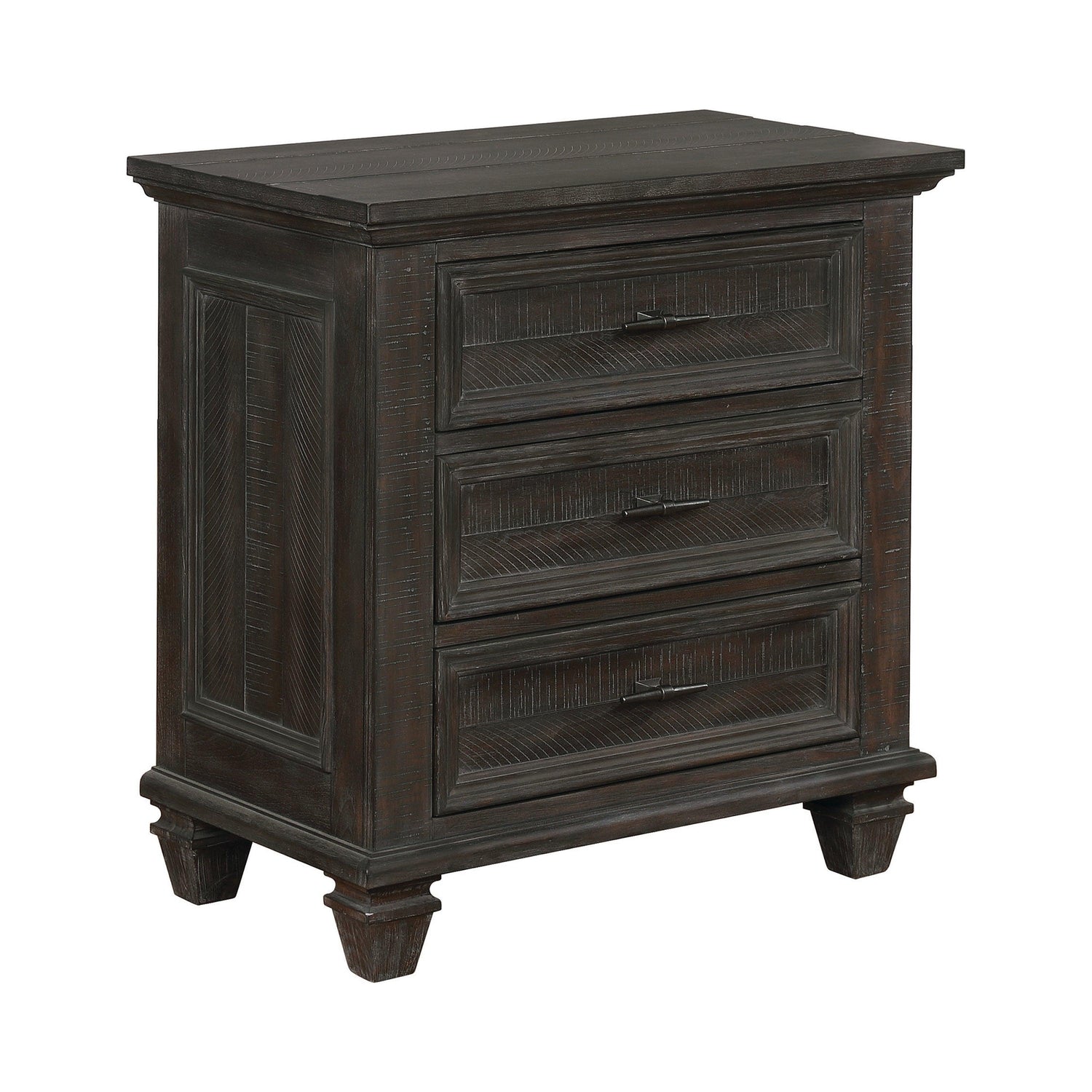 Cultivate your own unique bedroom layout with this dresser from the Atascadero collection, a Coaster Exclusive Design. Exquisite vineyard inspired design comes to life in weathered carbon finish, complete with a matte black finish on the metal handles. Rugged strength found in construction materials of solid pine, solid Asian hardwood, birch veneer, MDF and plywood. Ample storage to be found in dresser drawers. Felt-lined jewelry tray located in this piece.