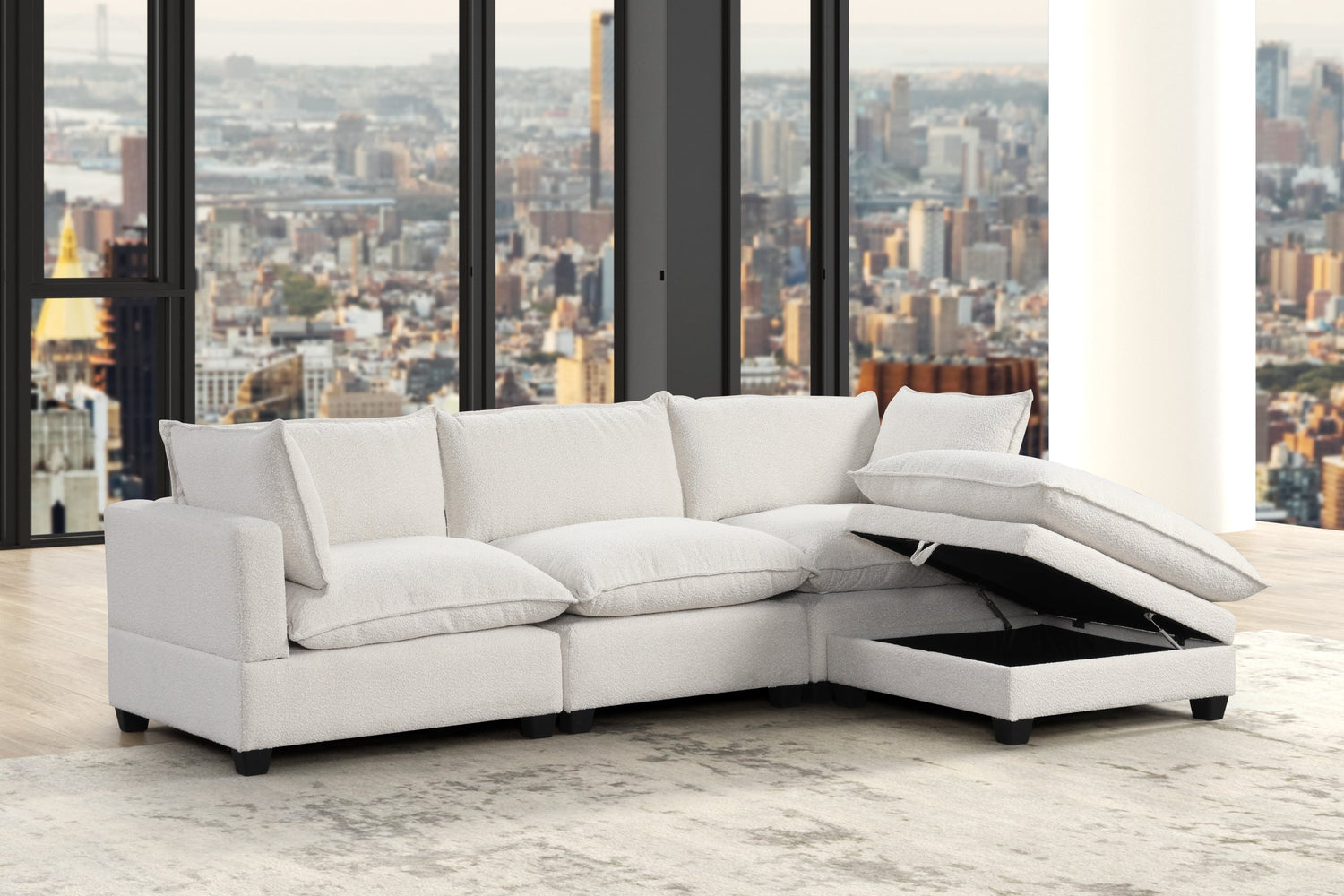 Cloud White Boucle Modular Sectional is backordered and will ship as soon as it is back in stock.