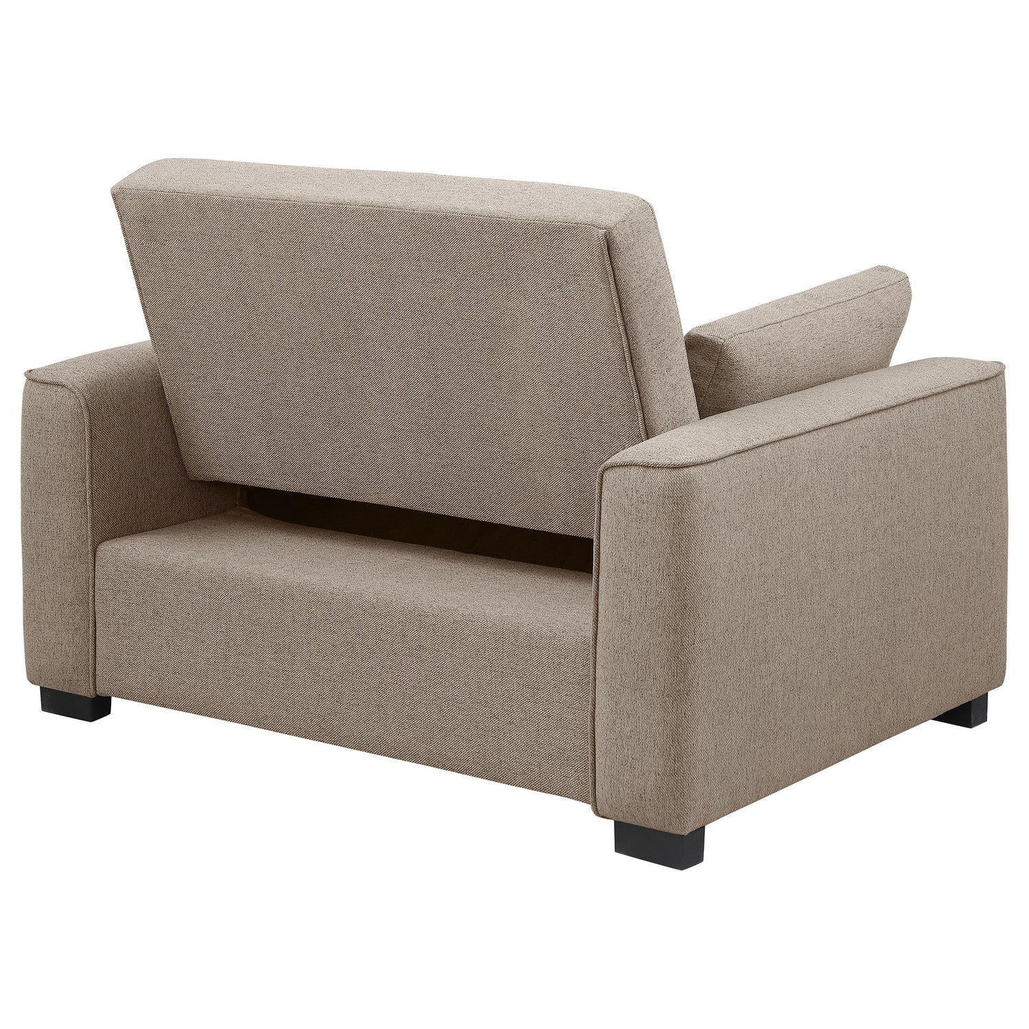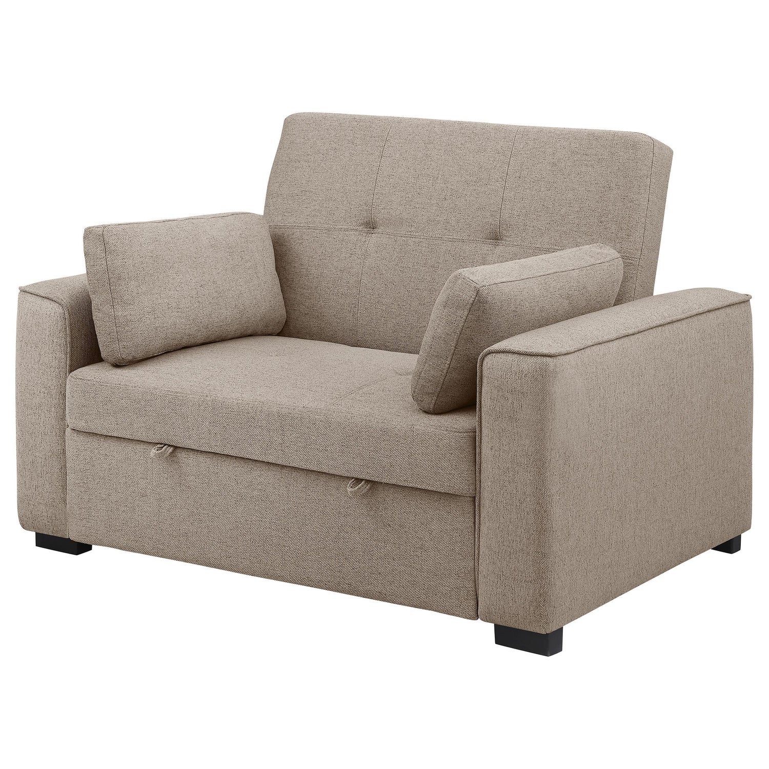 Add flexibility to your home office or living room with a modern sofa bed that doubles as a comfortable armchair. Perfect for guests or lounging, the armchair converts to a single bed, for a comfortable night's sleep. It's neutral upholstery suits in a variety of spaces, while biscuit tufting and piped trim creates a tailored look and feel. The sleeper includes two accent pillows that are ideal for relaxation no matter its configuration. Track arms adds structure and definition to clean-lined design that blends anywhere.
