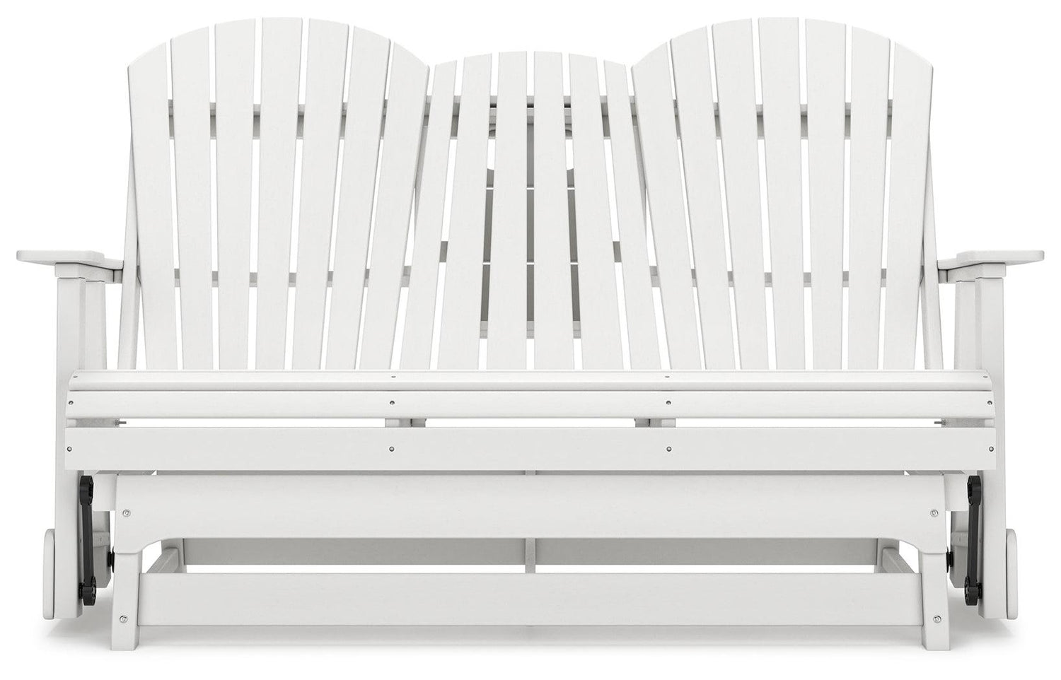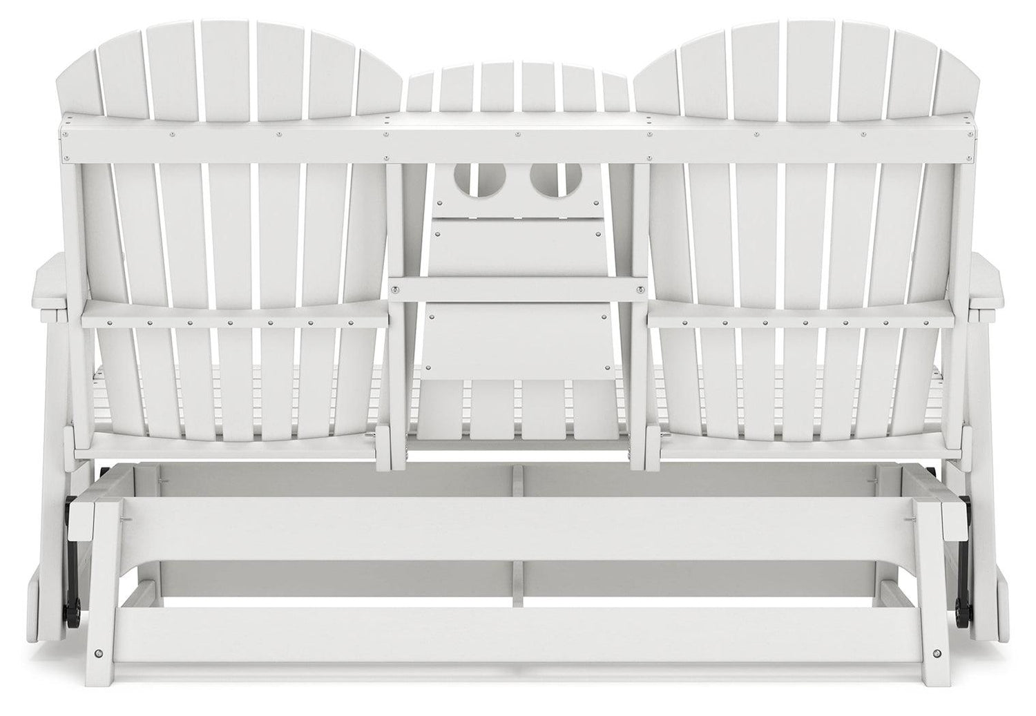 Drift away from everyday worries and into outdoor bliss with this glider loveseat. Dressed in a crisp white, the Adirondack-inspired design has a classic feel. It weathers sunny summer days and cozy winter nights with durable MEGA TUFF™ HDPE material. A drop-down console with integrated cup holders keeps refreshments and snacks within easy reach. With the console snapped into the back, this loveseat has even more room for enjoying lazy days in the shade.